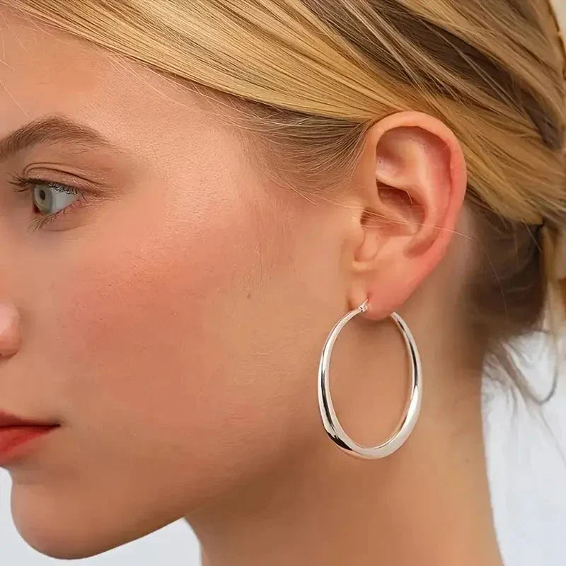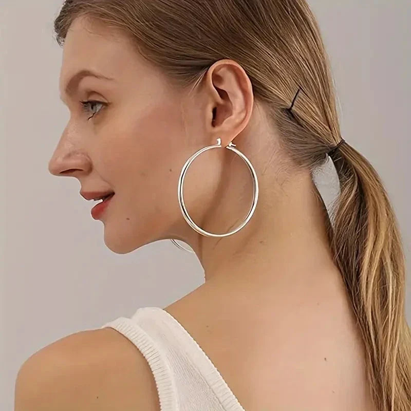 Designed with a timeless and minimalist silhouette, these hoops effortlessly complement any outfit—whether casual, professional, or chic. The sleek, simple design ensures versatile wear, while the absence of plating guarantees they won't tarnish over time, maintaining their lustrous appearance day after day.