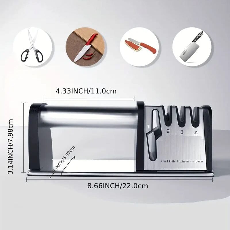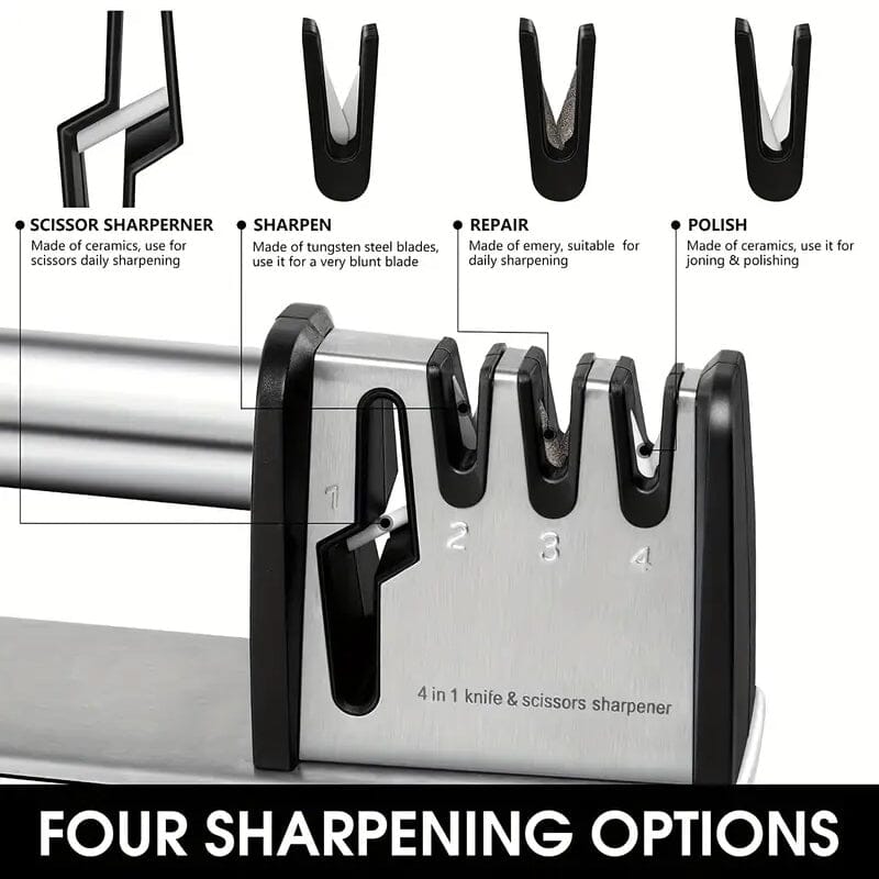 Featuring four distinct stages, this sharpener efficiently sharpen, repair, and polish a variety of blades, including chef knives, pocket knives, and even scissors. Whether you're a home cook or a professional chef, this kitchen essential ensures your knives perform at their peak, enabling effortless slicing, dicing, and chopping.